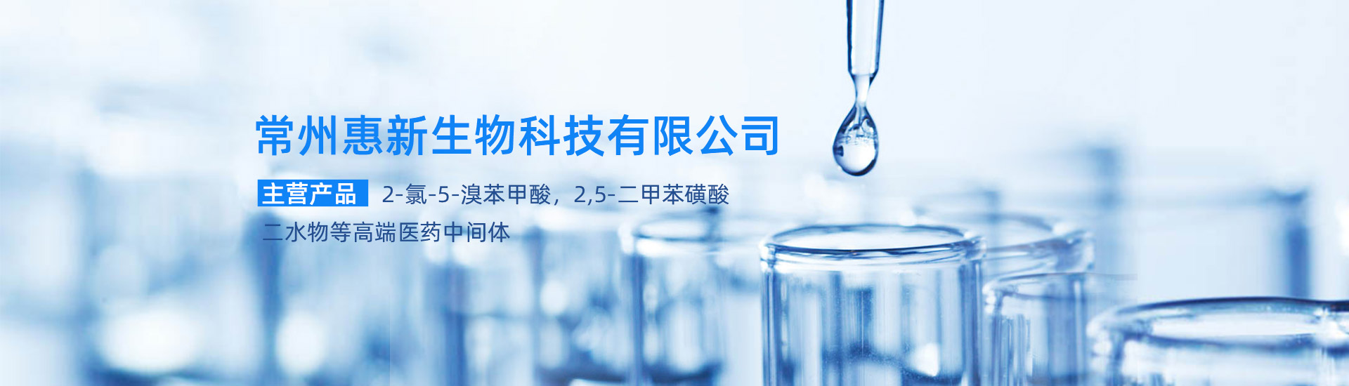 常州惠新生物科技有限公司位于金壇城南,總投資450萬元 ,占地面積20000平方米。 公司擁有高層次技術人員20名,緊跟市場需求,研發(fā)高端醫(yī)藥中間體,其中2-氯-5-溴苯甲酸年產量30噸以上,2,5-二甲苯磺酸二水物年產量10噸以上。公司擅長溴代、磺化、重氮化、氫化還原等一系列反應。生產檢驗設備齊全并擁有自營進出權,公司50%以上的產品出口歐洲,東南亞等地區(qū)。歡迎新老客戶合作咨詢!